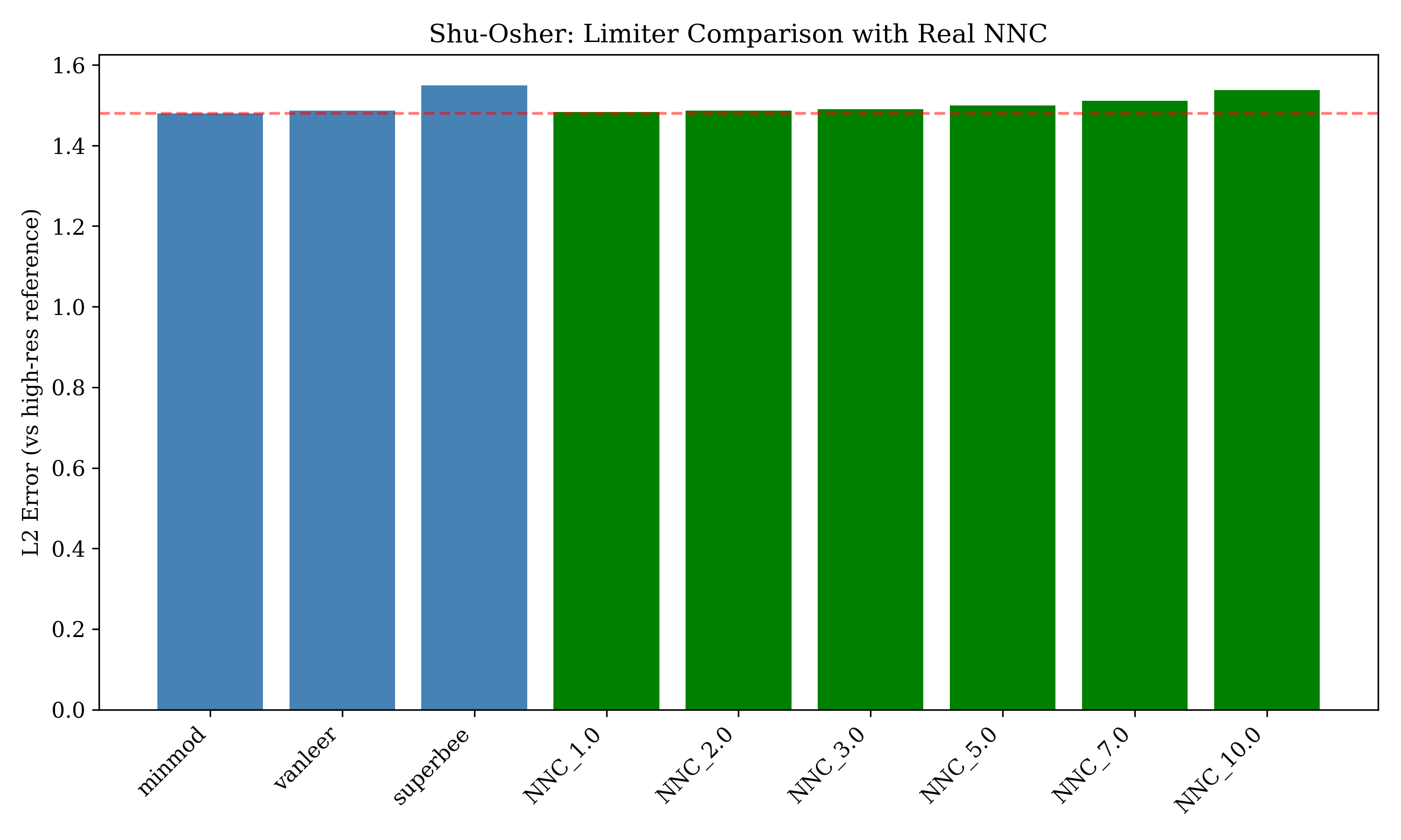 simulations/shock_tube_full_nnc_update.py- CURRENT: Real NNC operatorssimulations/shock_tube_moo.py- Original Sod solversimulations/shu_osher_moo.py- Shu-Osher solversimulations/cross_validation_experiment.py- Transfer testssimulations/mesh_refinement_study.py- Resolution testssimulations/multi_seed_moo.py- Statistical validation